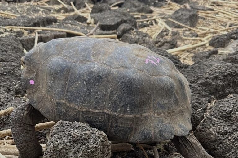 The tortoises of Floreana went extinct a decade or two after Charles Darwin’s visit in 1835, with the very last surviving individuals most likely hunted for food. In November 2015, 19 tortoises with partial Floreana ancestry were transferred from Wolf Volcano to the Tortoise Center on Santa Cruz. An additional four tortoises already in the Center were also identified as having partial Floreana tortoise ancestry. A breeding program, initiated with 20 of these tortoises in 2017, is producing tortoises with nearly 100% Floreana ancestry.